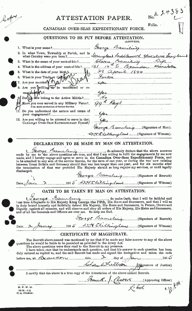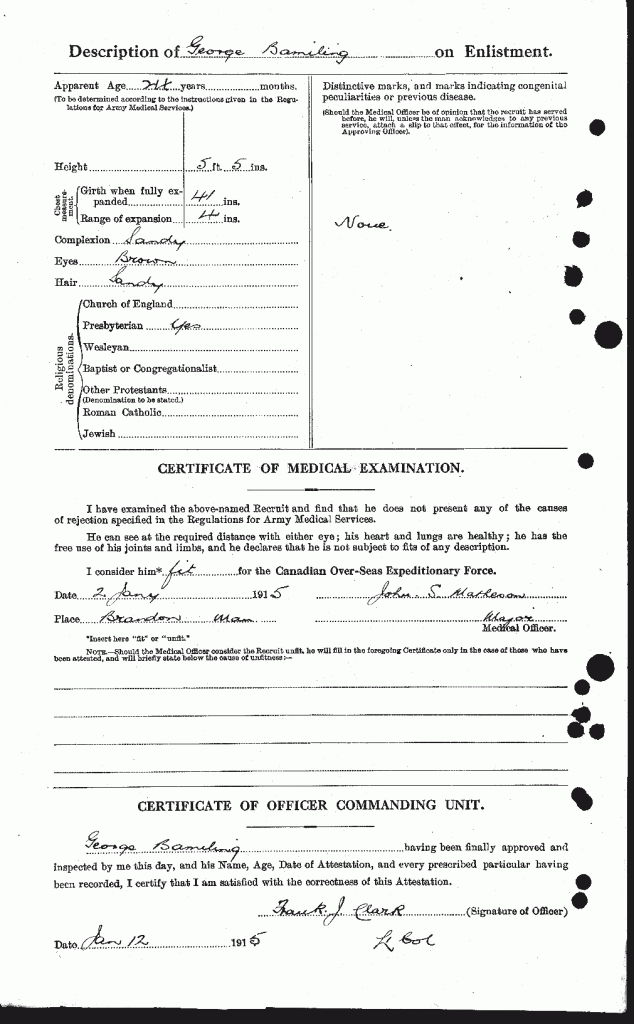 Source: 18th Battalion Nominal Roll, April 1915.
