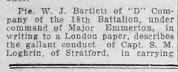 Letter written by Private W.J. Bartlett to the London Advertiser describing Harry Drinkwater: