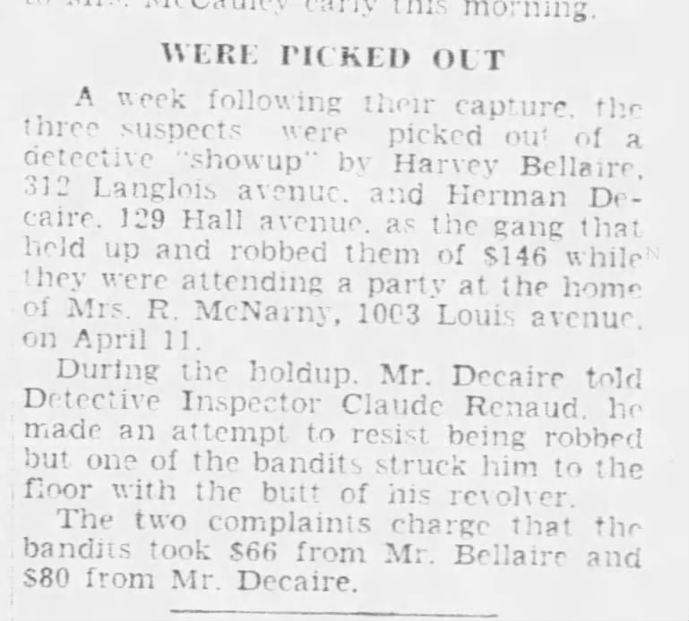 Family Search: When Private Harvey Joseph Bellaire was born on 9 April 1897, in Elmstead, Essex, Ontario, Canada, his father, Stanislas Bellaire, was 25 and his mother, Joséphine Marie Pitre, was 24. He lived in Essex, Ontario, Canada in 1901 and Windsor, Sandwich, Essex, Ontario, Canada for about 13 years. In 1918, at the age of 21, his occupation is listed as machinist in Windsor, Sandwich, Essex, Ontario, Canada. He died on 7 April 1979, in Windsor, Essex, Ontario, Canada, at the age of 81, and was buried in Saint Alphonsus Cemetery, Windsor, Essex, Ontario, Canada.