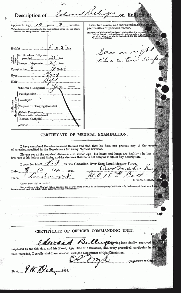 Under age. Born June, 9, 1899. Gave date of birth on attestation papers as March 9, 1894.