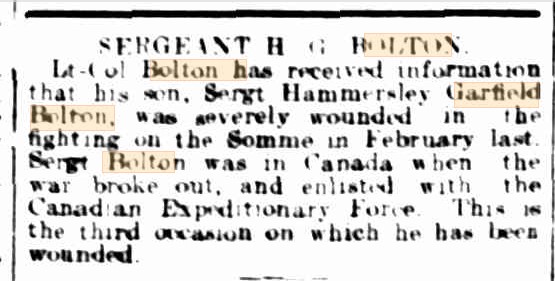 Bolton, Hammersly Garfield: Service no. 53200 Digitized Service Record Source: Per service record Oudot, reg. no. 53149. Find-A-Grave This man’s father was Lieutenant Colonel William Kinsley Botlon, CBE, VD, of the Australian Army Per Trove. Pension letter in response to query by Sgt. Bolton’s wife. He was severely wounded during his service with the 18th and lost a leg, which permanently disabled him. See his service record for more details. Share this: Click to email a link to a friend (Opens in new window) Email Click to share on Facebook (Opens in new window) Facebook Click to share on X (Opens in new window) X Click to share on Reddit (Opens in new window) Reddit Click to share on LinkedIn (Opens in new window) LinkedIn Click to print (Opens in new window) Print Click to share on Tumblr (Opens in new window) Tumblr Click to share on Pocket (Opens in new window) Pocket Click to share on Pinterest (Opens in new window) Pinterest Click to share on Telegram (Opens in new window) Telegram Click to share on WhatsApp (Opens in new window) WhatsApp Like Loading...