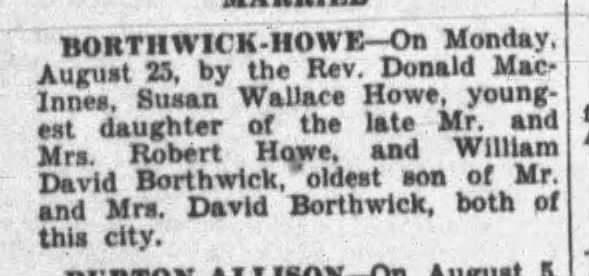 Surviving are his wife, Mima; two sons, William D., with whom he resided; John S., of Hamilton; four grandchildren; his mother, Mrs. John Borthwick; a brother, William and a sister, Miss Margaret Borthwick, all of Stratford.
