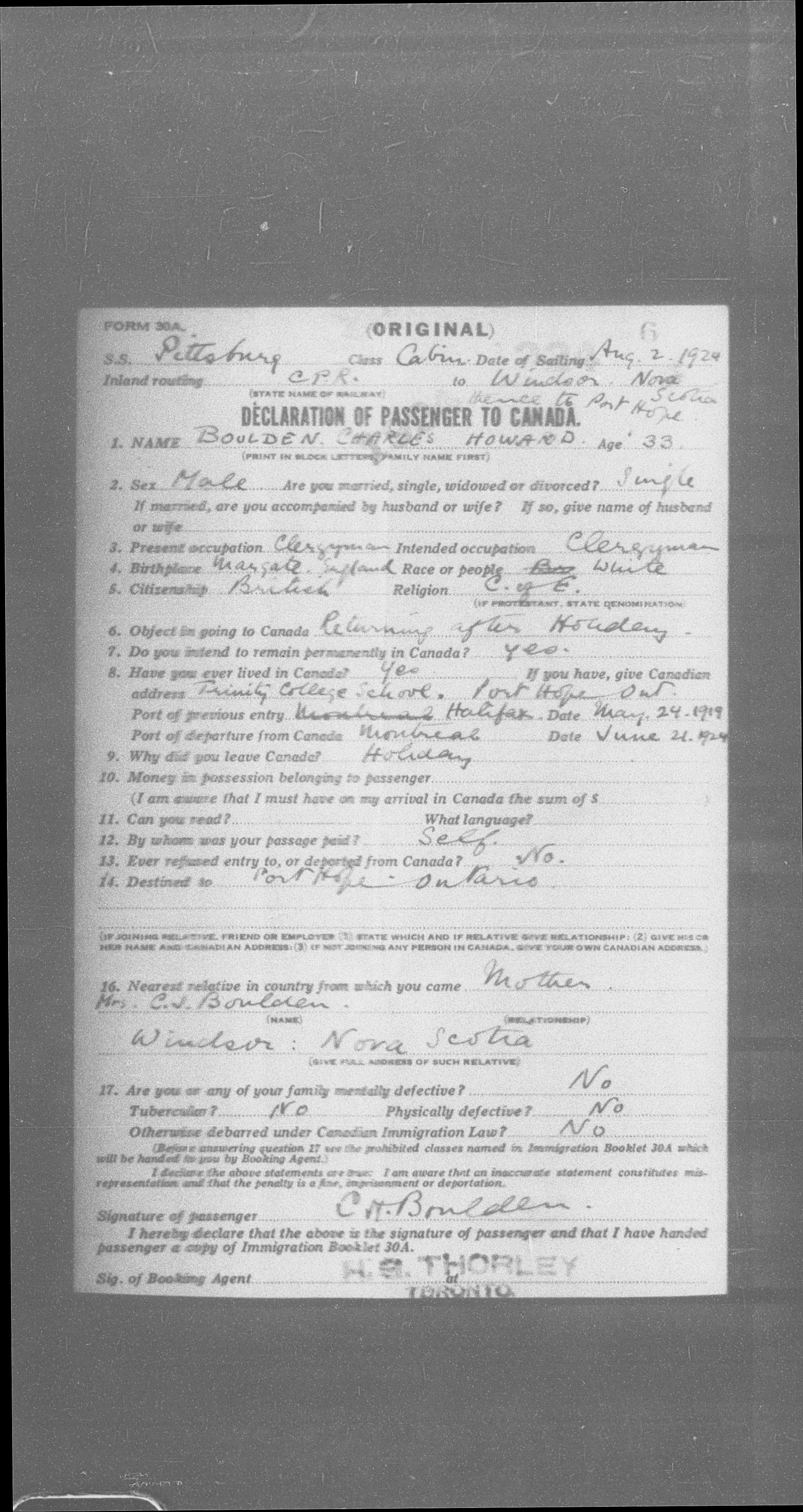 Served in the 18th Battalion from December 12, 1918 until its return to Canada in the Spring of 1919. Became Headmaster of Trinity College School, Port Hope, Ontario after World War 1 until 1932.