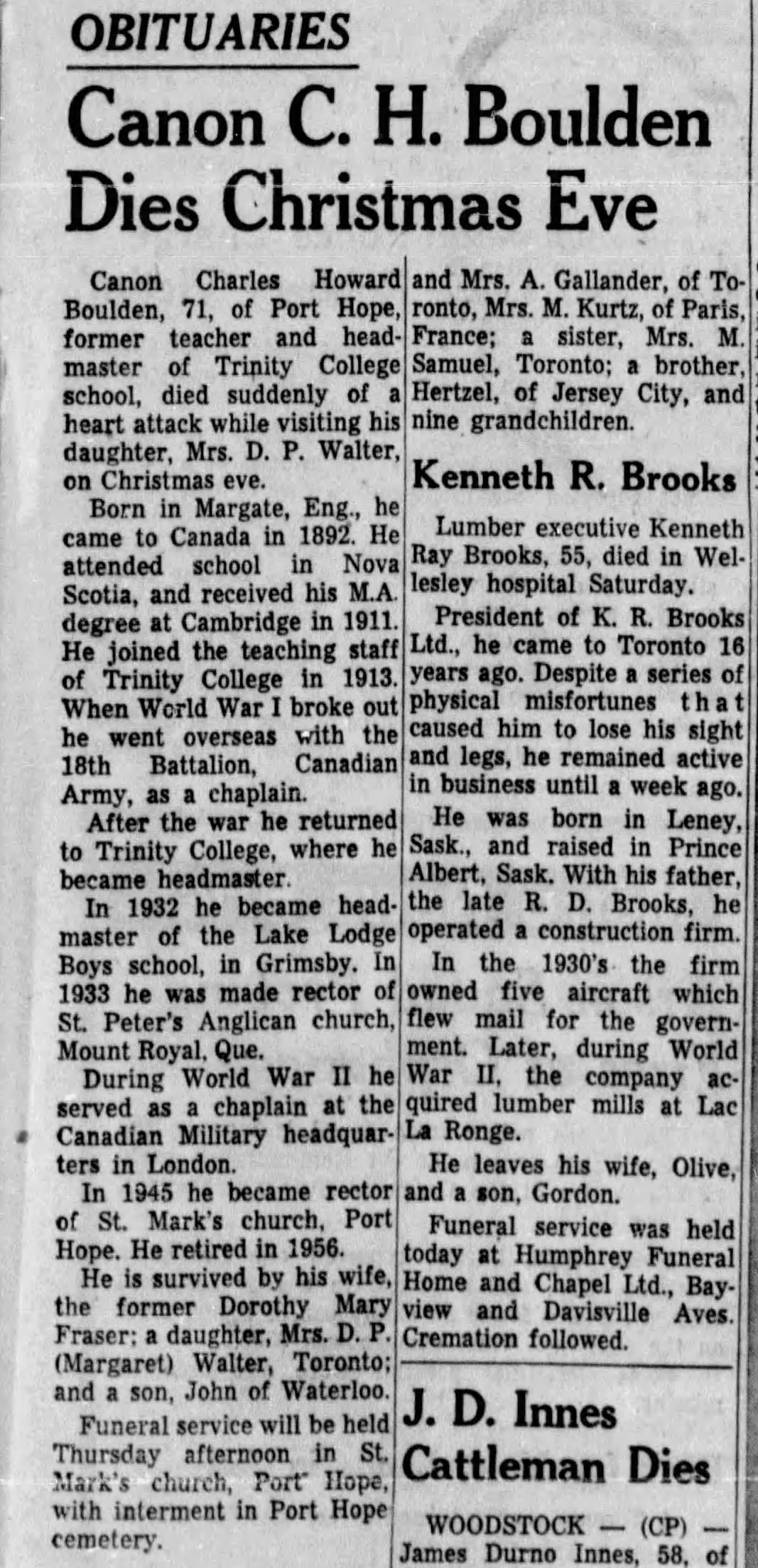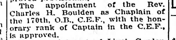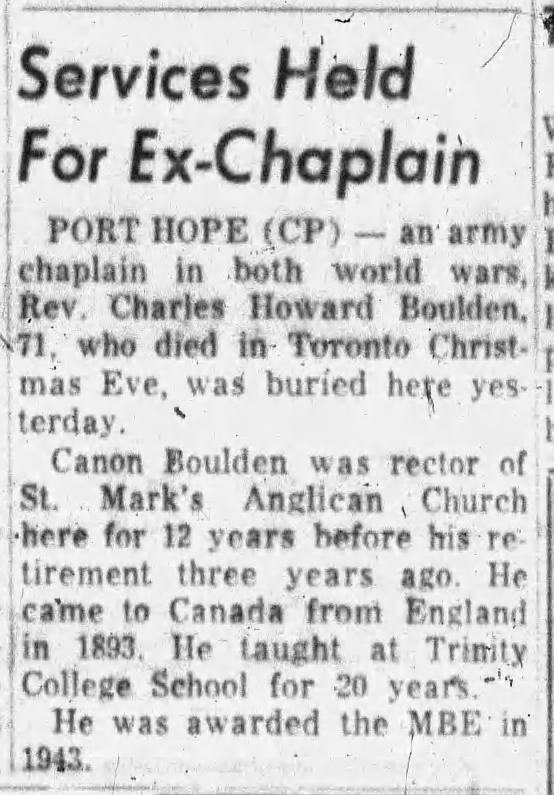 Trinity College School Newsletter with information regarding Captain Charles Howard Boulden. (Broken Link)