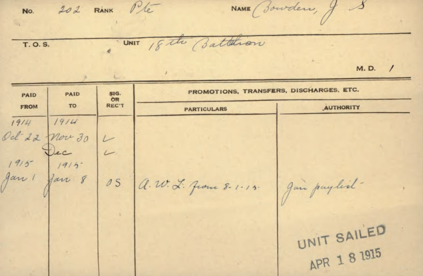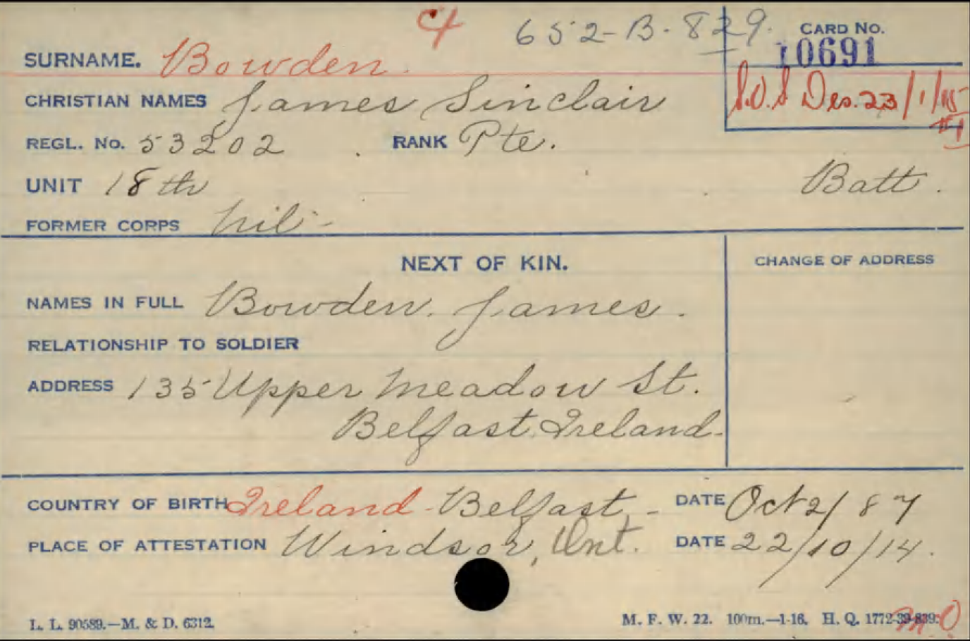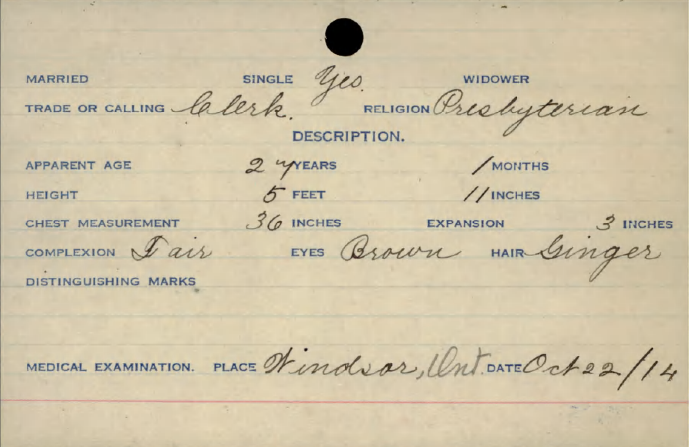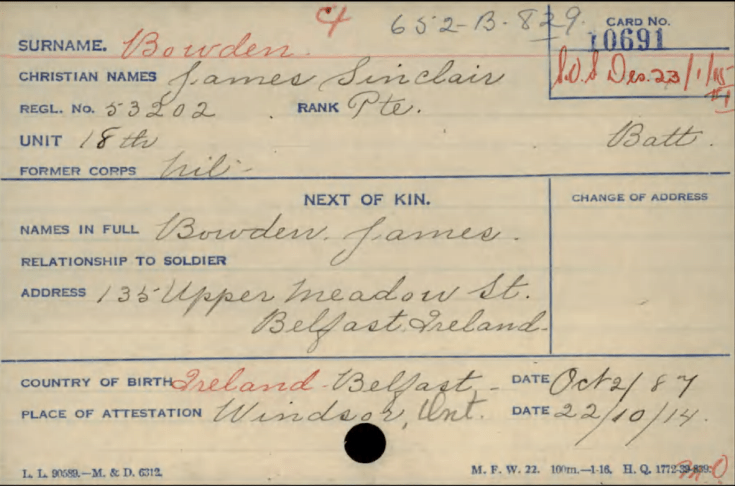 No attestation papers on file at LAC. Service record located here.