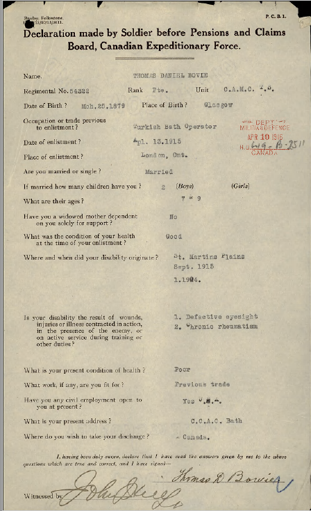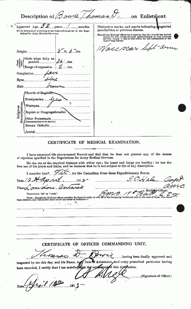 Source: 18th Battalion Nominal Roll, April 1915. Note that the reg. no. on record on nominal roll (53322) is incorrect.