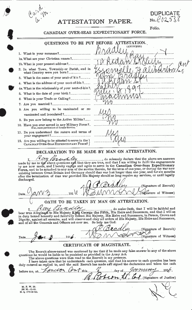 Source: Source: Operation Picture Me via The 18th Battalion Facebook Group. London Free Press Circa 1917.