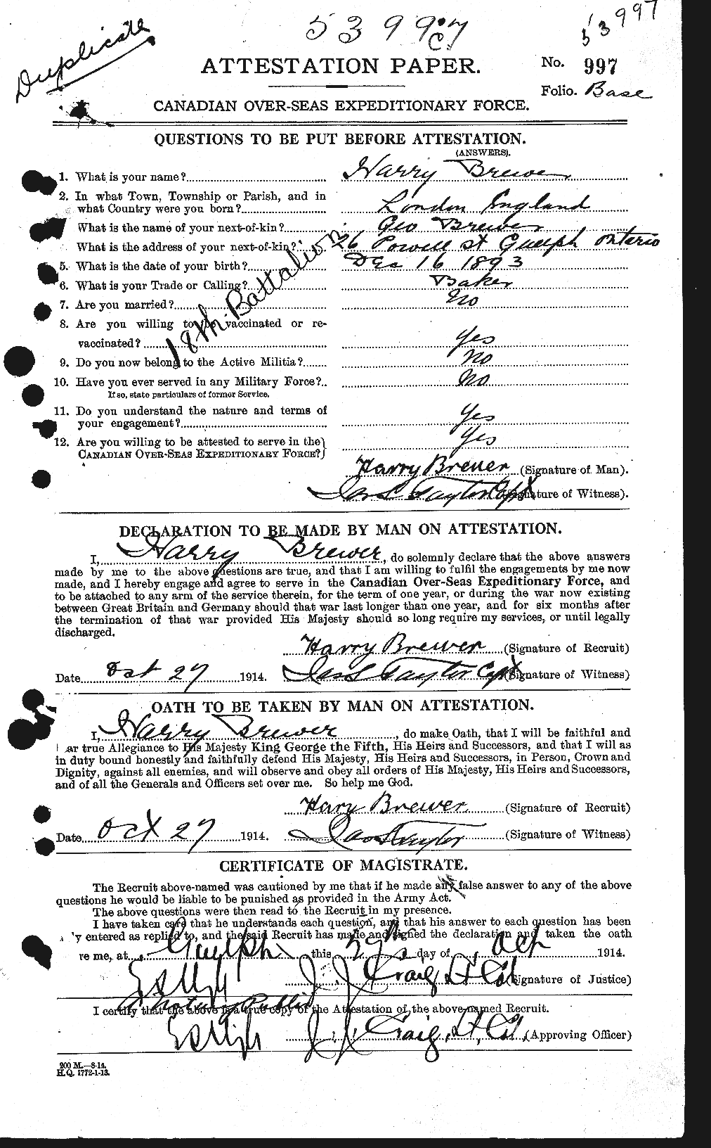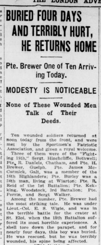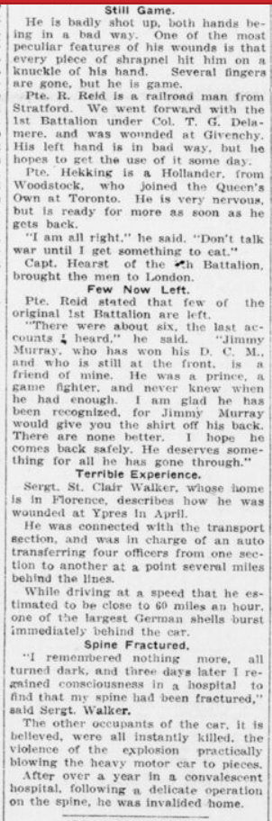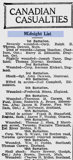 Source: Canadian Casualties List, Toronto World; March 30, 1916; Page 12. (Shell Shock)