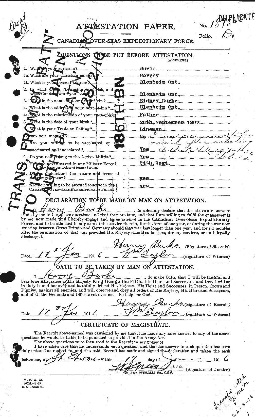 Brother to Stanley Lorne Burke who also served in the 18th Battalion.