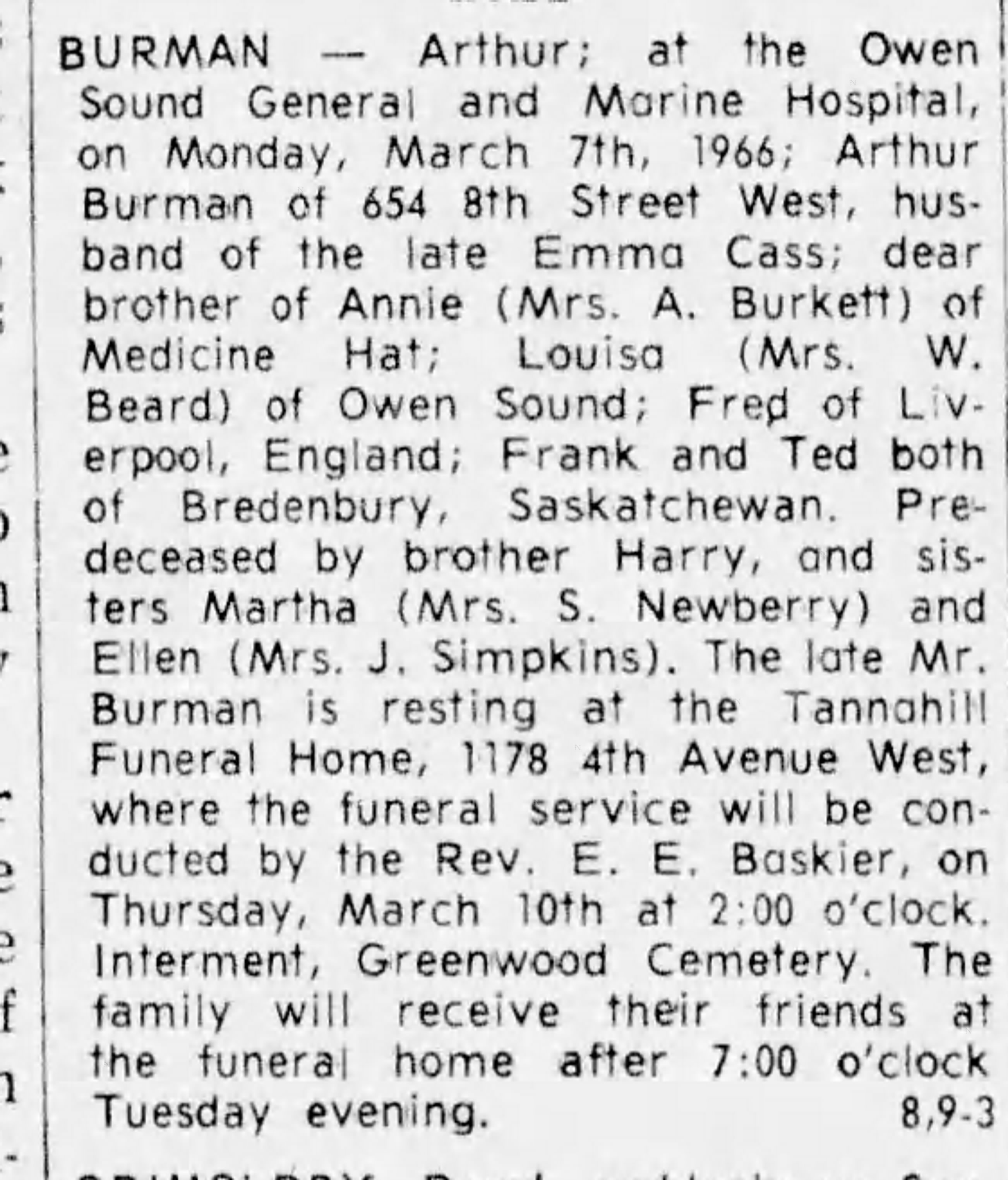 Private Arthur Burman. Regimental no. 409099.