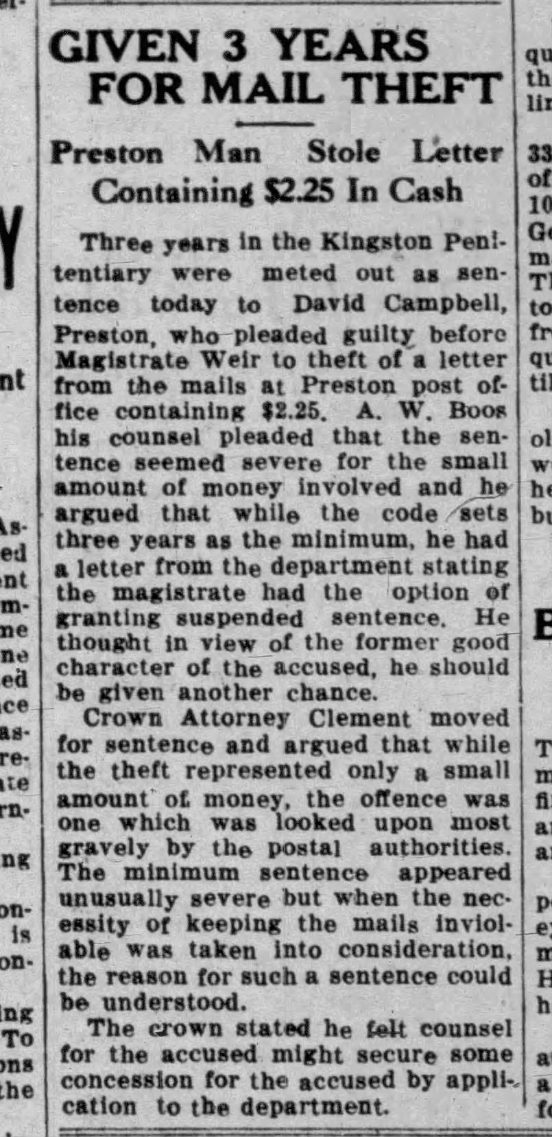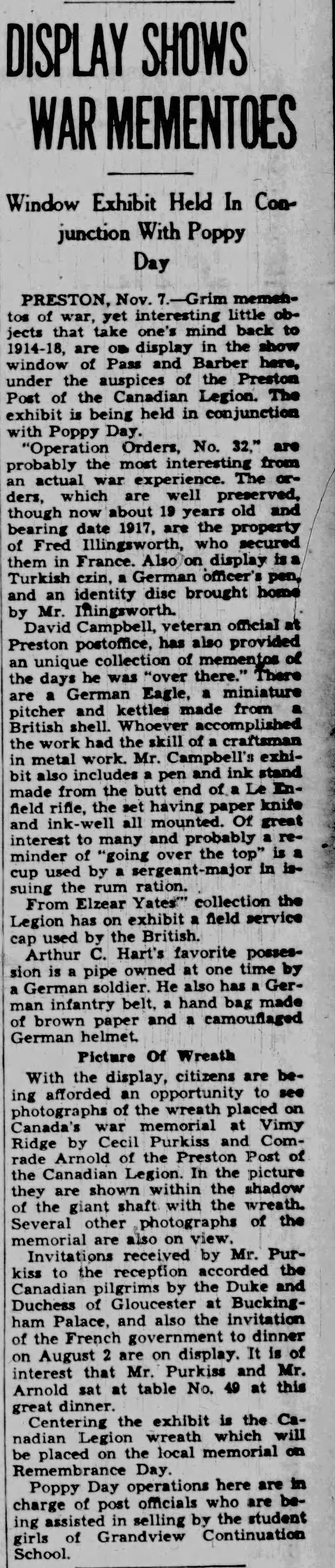His death was considered related to his military service and a Memorial Cross was despatched to his wife, Martha, residing at 542 Guelph Street, Preston, Ontario. It was issued to her as his mother was deceased.