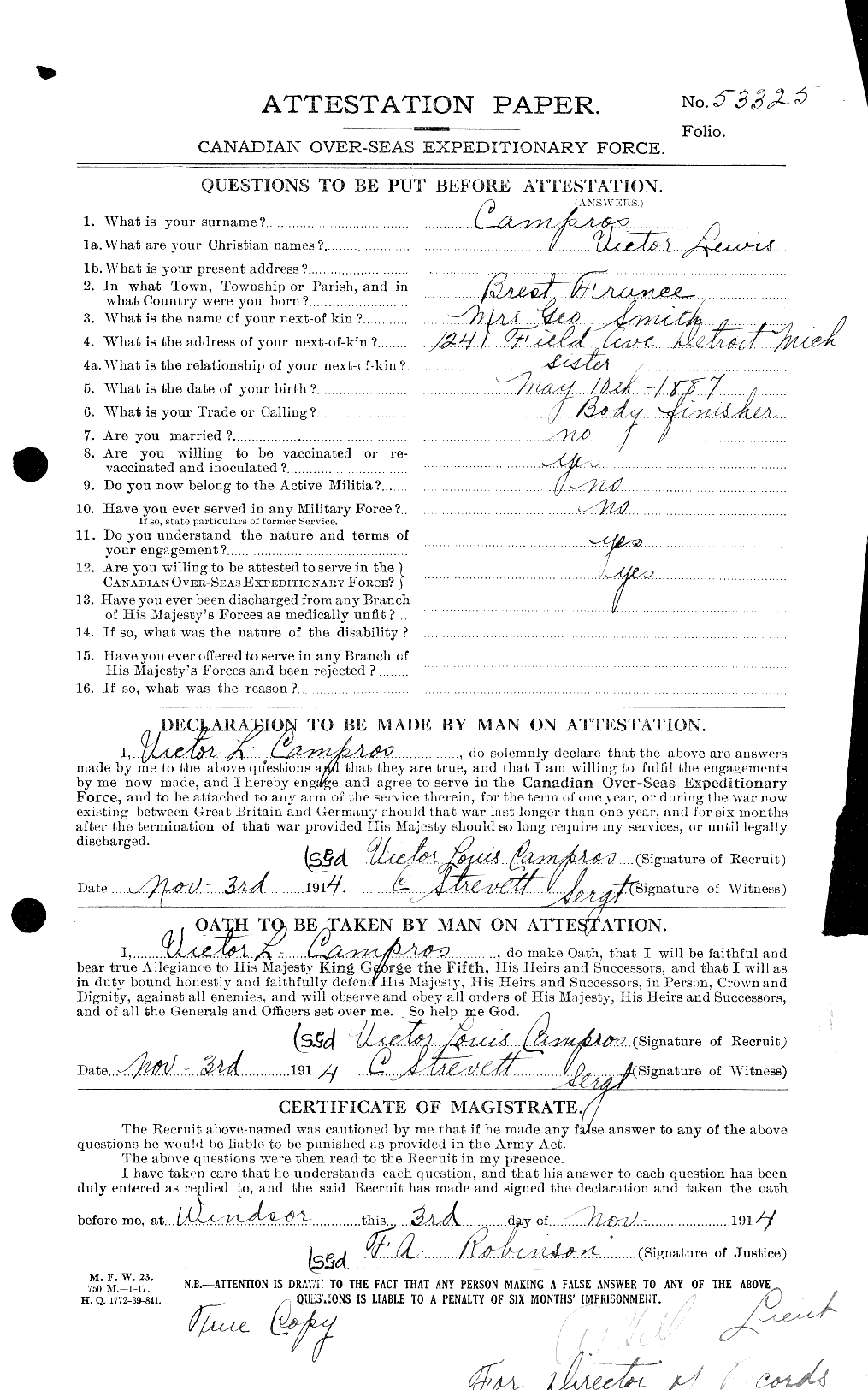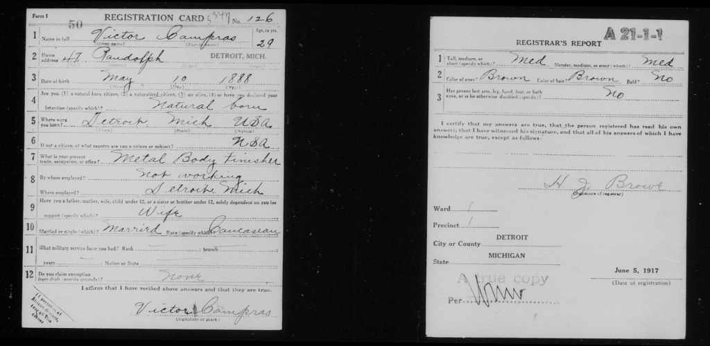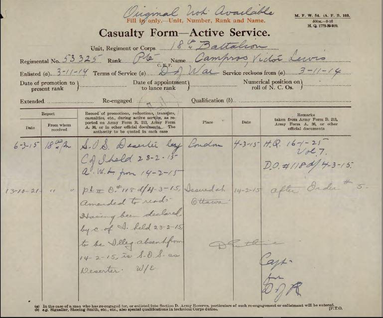 Source: Lizbet Tobin via 18th Battalion Facebook post. Reference link to IWM site for Victor Lewis Campros and his wife, Ellie Nellie Campros.