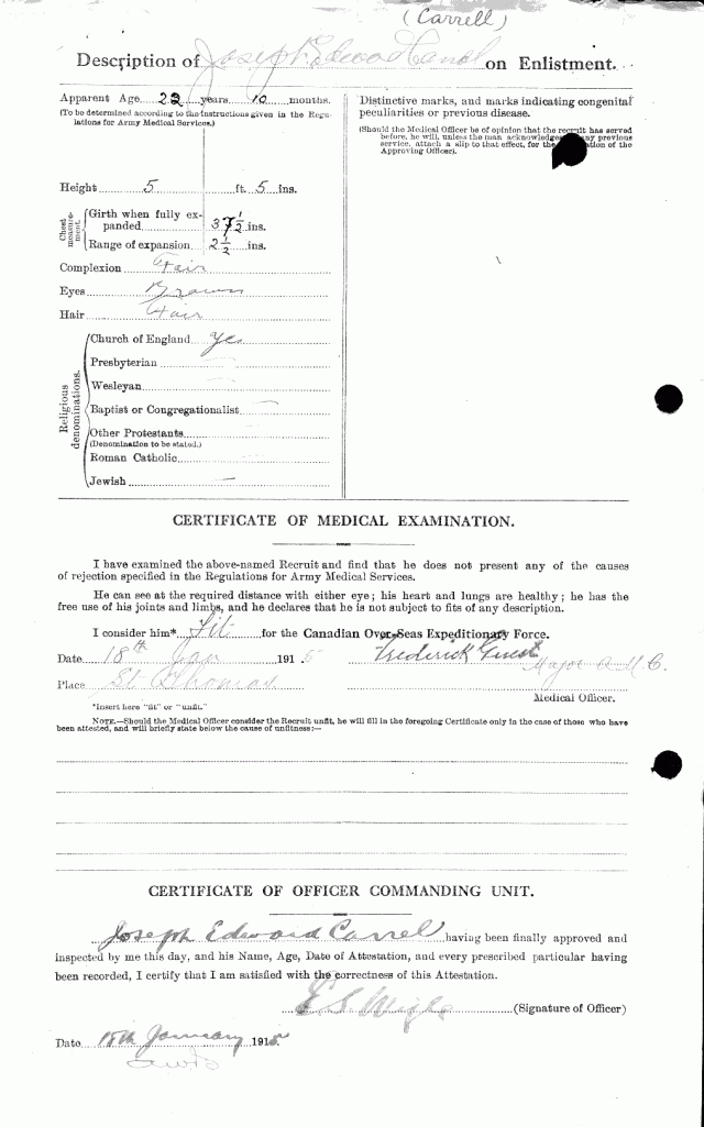 It is interesting to note that Joseph Edward Carrel had a brother Edward Joseph Carrel, who also served in the war.