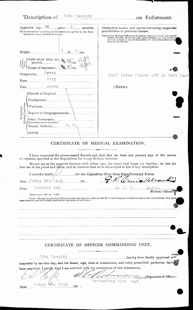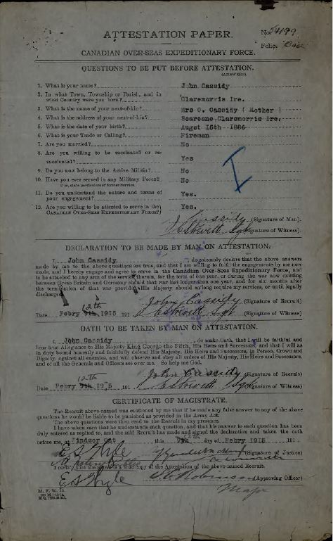 Source: 18th Battalion Nominal Roll, April 1915.