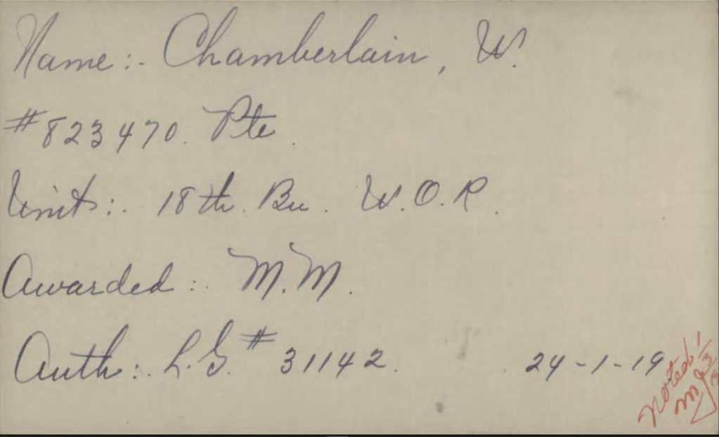 He earned a Military Medal for valour in the field which was gazetted on 24 January 1919.