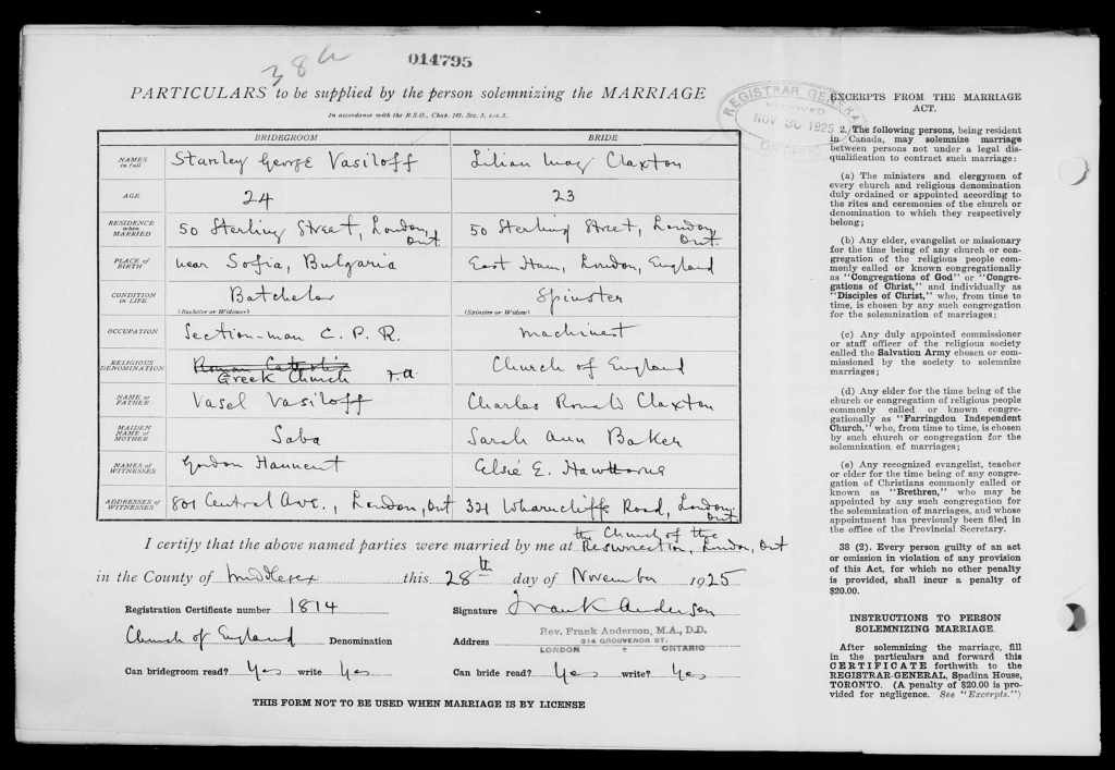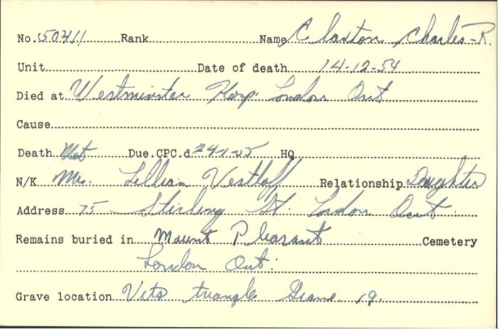 Source: Per photograph of headstone by the London Robinsons at the 18th Battalion Facebook Group.