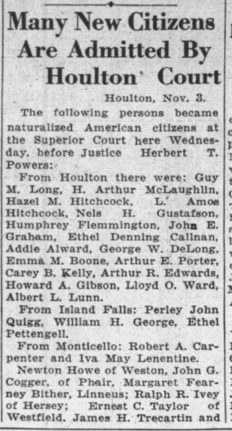 In May 1945, Mr. Cogger accepted a position of telegrapher in the Houlton office and six months later was forced to resign because of ill health. He had been hospitalized for the past 14 months.