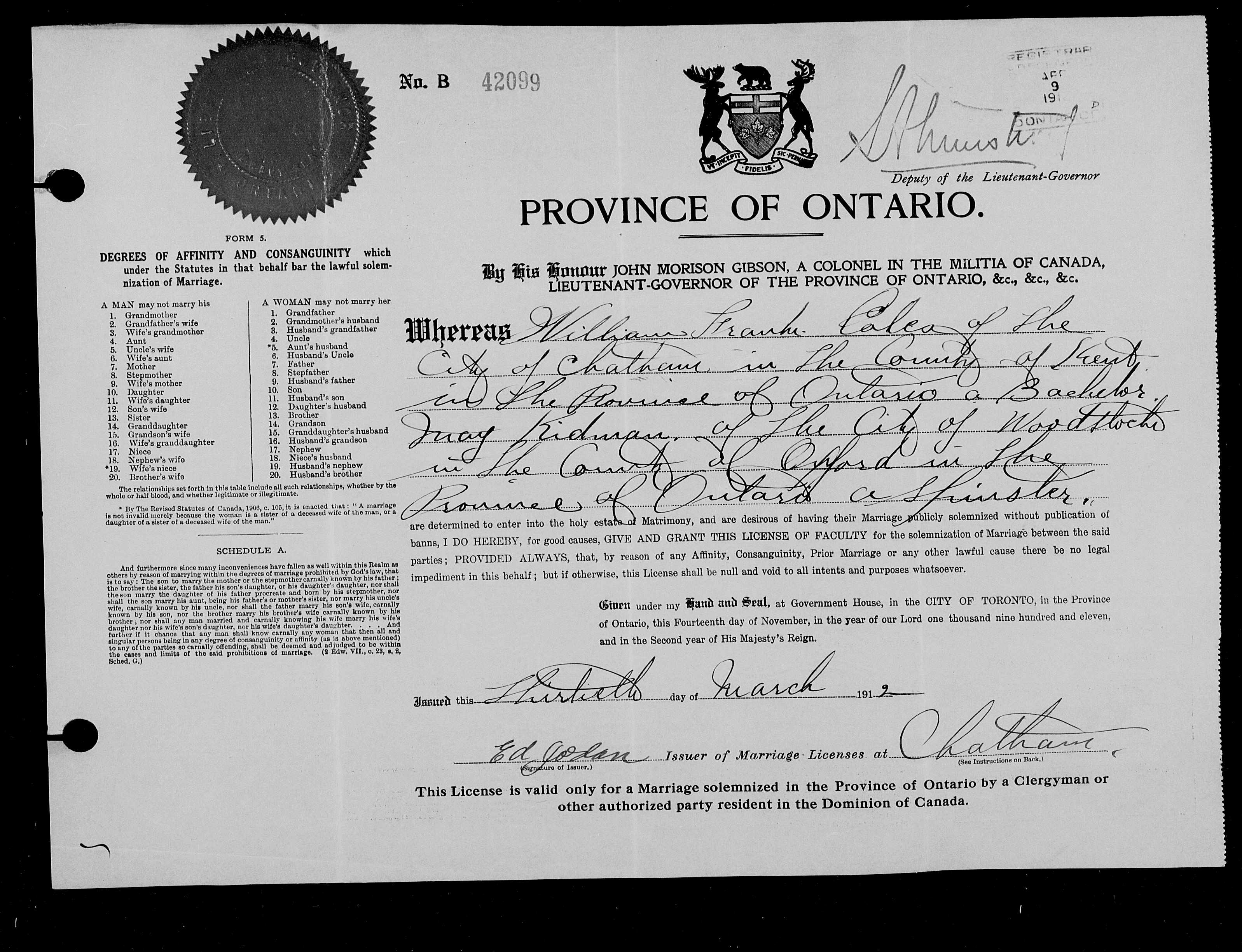 Family Search: When Private William Frank Coles was born on 3 October 1889, in Southsea, Hampshire, England, United Kingdom, his father, William James Coles, was 30 and his mother, Sarah Louisa Bray, was 28. He married Rosina Ethel Townsend in 1908, in Ringwood, Hampshire, England, United Kingdom. He lived in St Mary’s Church, Portsea, Hampshire, England, United Kingdom in 1891 and Kent, Georgian Highlands, Grey, Ontario, Canada in 1911. He registered for military service in 1916. In 1940, his occupation is listed as ontario steel in Chatham, Kent, Ontario, Canada. He died on 16 May 1966, in Chatham, Kent, Ontario, Canada, at the age of 76, and was buried in Maple Leaf Cemetery, Chatham, Chatham-Kent, Ontario, Canada.