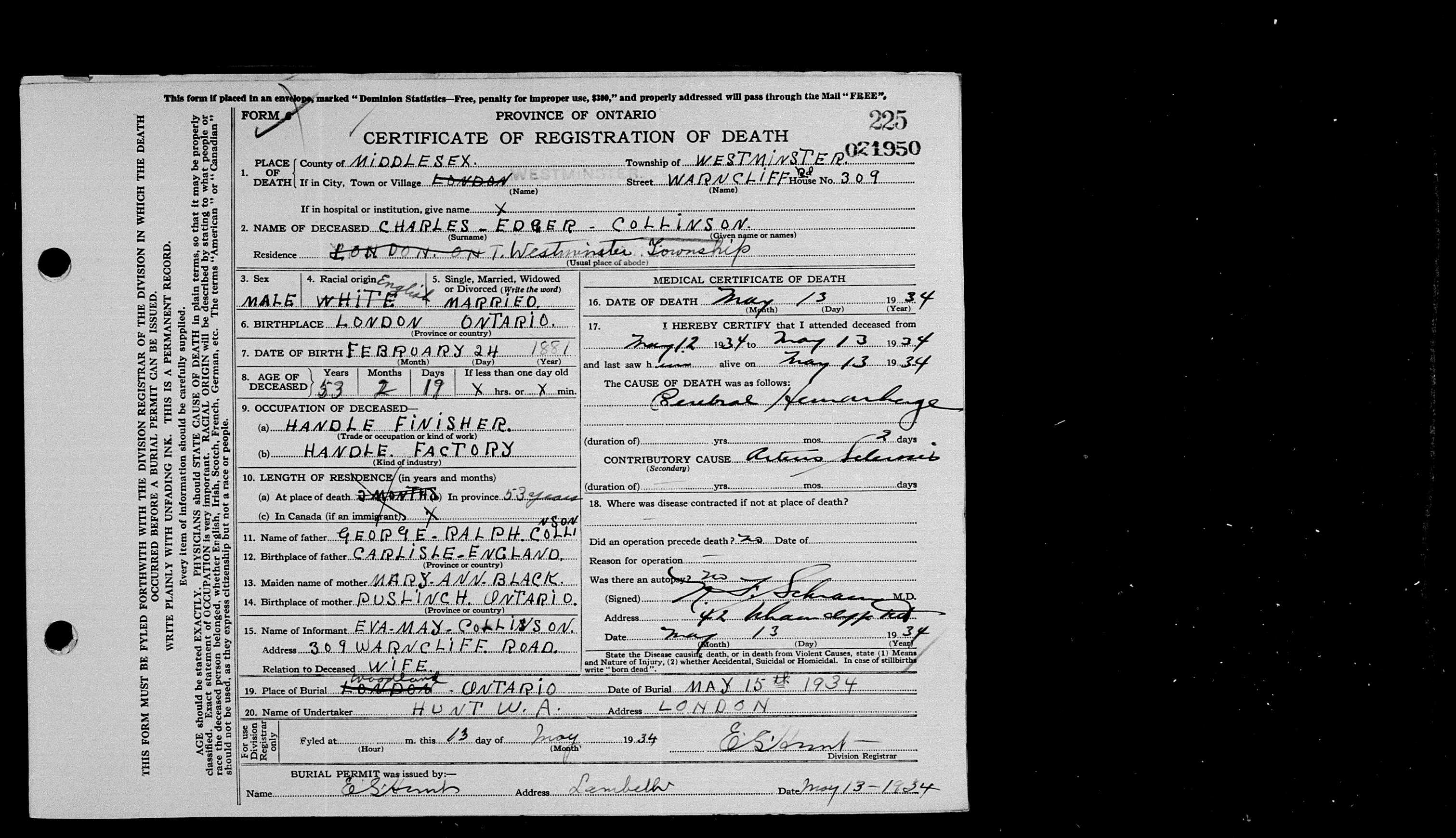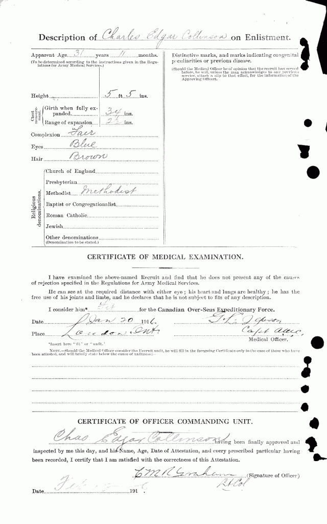 Collinson, Charles Edgar: Service no. 823539 Digitized Service Record Source: Operation Picture Me via The 18th Battalion Facebook Group. London Free Press Circa 1916. Find-A-Grave Source: Operation Picture Me via The 18th Battalion Facebook Group. London Free Press. November 14, 1916. Share this: Click to email a link to a friend (Opens in new window) Email Click to share on Facebook (Opens in new window) Facebook Click to share on X (Opens in new window) X Click to share on Reddit (Opens in new window) Reddit Click to share on LinkedIn (Opens in new window) LinkedIn Click to print (Opens in new window) Print Click to share on Tumblr (Opens in new window) Tumblr Click to share on Pocket (Opens in new window) Pocket Click to share on Pinterest (Opens in new window) Pinterest Click to share on Telegram (Opens in new window) Telegram Click to share on WhatsApp (Opens in new window) WhatsApp Like Loading...