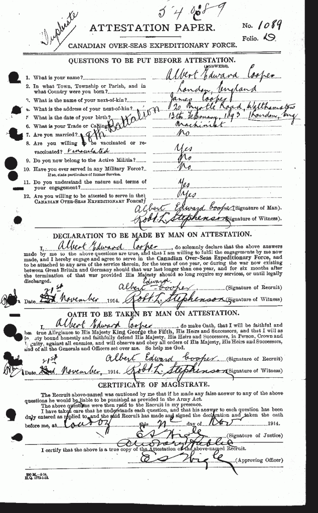 Source: 18th Battalion Nominal Roll, April 1915.