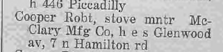 Vernon’s London Guide (1914) shows him as a Stove Mounter working for McClary Manufacturing Company and living at 7 Hamilton Road.