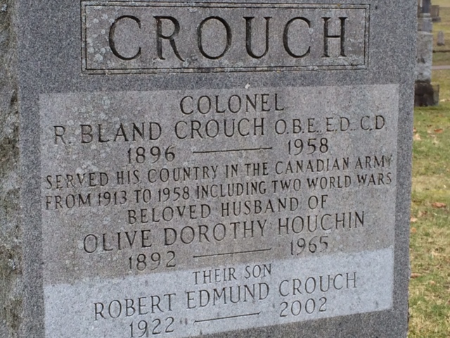 The following photographs are of Colonel R. Bland Crouch’s grave at Mount Pleasant Cemetery, London, Ontario. Photo credit: Paul Culliton.