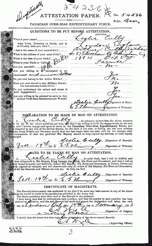 This man was SOS to Imperial Army 10 March 1917. Probably did not return to Canada.