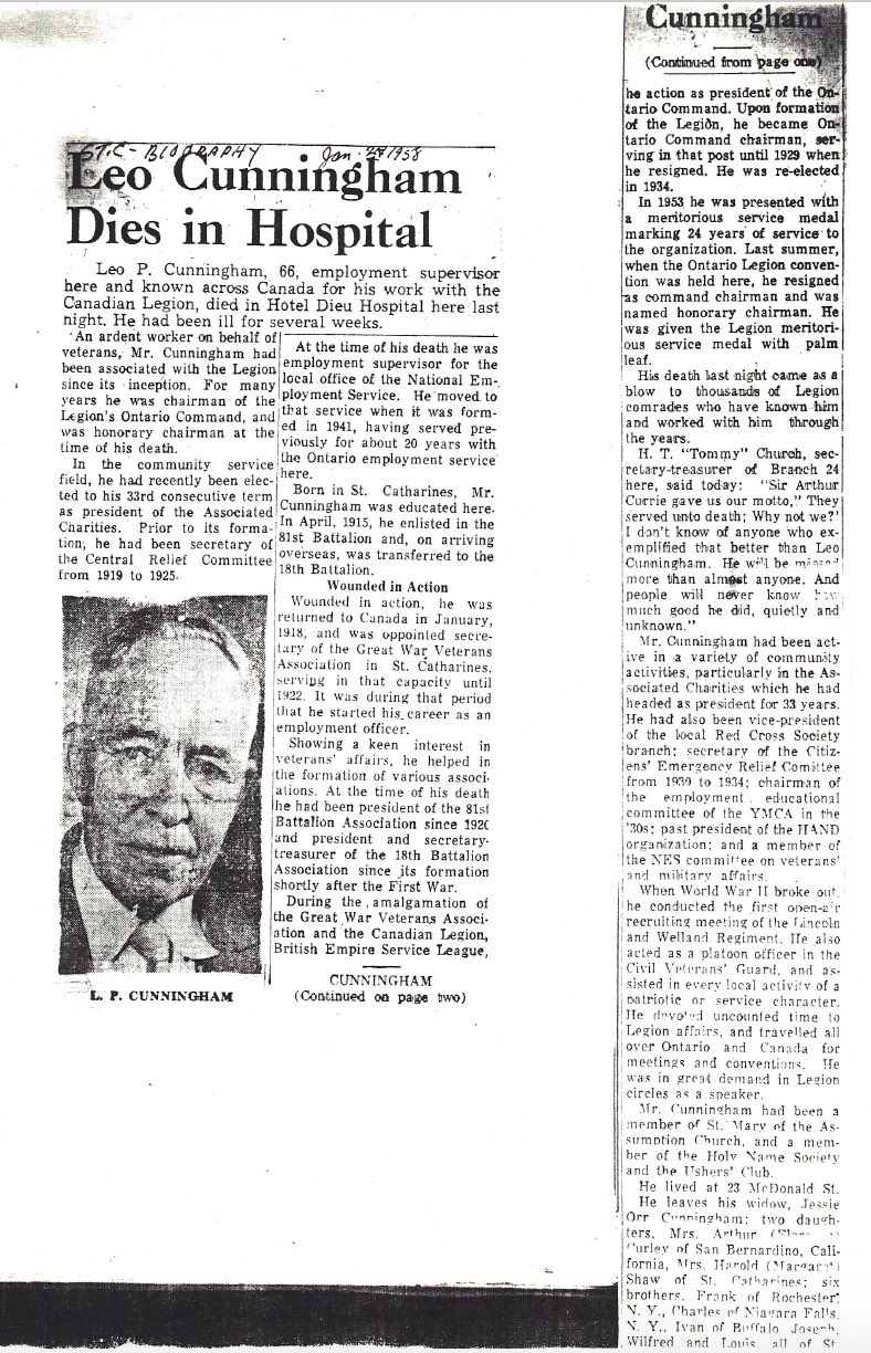 Obituary from January 1958. He passed on January 1, 1958 at Ste. Catharines, Ontario. Source: @Joel_Welch