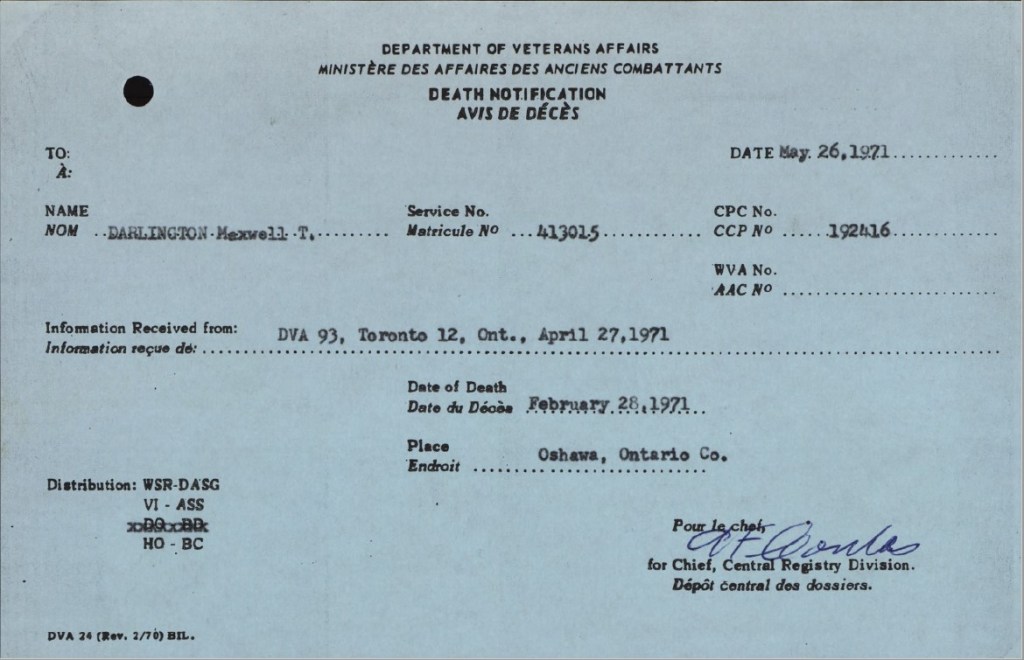Darlington, Maxwell T.: Service no. 413015 Digitized Service Record Source: Search for Darlington, a sniper mentioned in Private Siddle’s sniper article in McLean’s Magazine. Find-A-Grave Share this: Click to email a link to a friend (Opens in new window) Email Click to share on Facebook (Opens in new window) Facebook Click to share on X (Opens in new window) X Click to share on Reddit (Opens in new window) Reddit Click to share on LinkedIn (Opens in new window) LinkedIn Click to print (Opens in new window) Print Click to share on Tumblr (Opens in new window) Tumblr Click to share on Pocket (Opens in new window) Pocket Click to share on Pinterest (Opens in new window) Pinterest Click to share on Telegram (Opens in new window) Telegram Click to share on WhatsApp (Opens in new window) WhatsApp Like Loading...