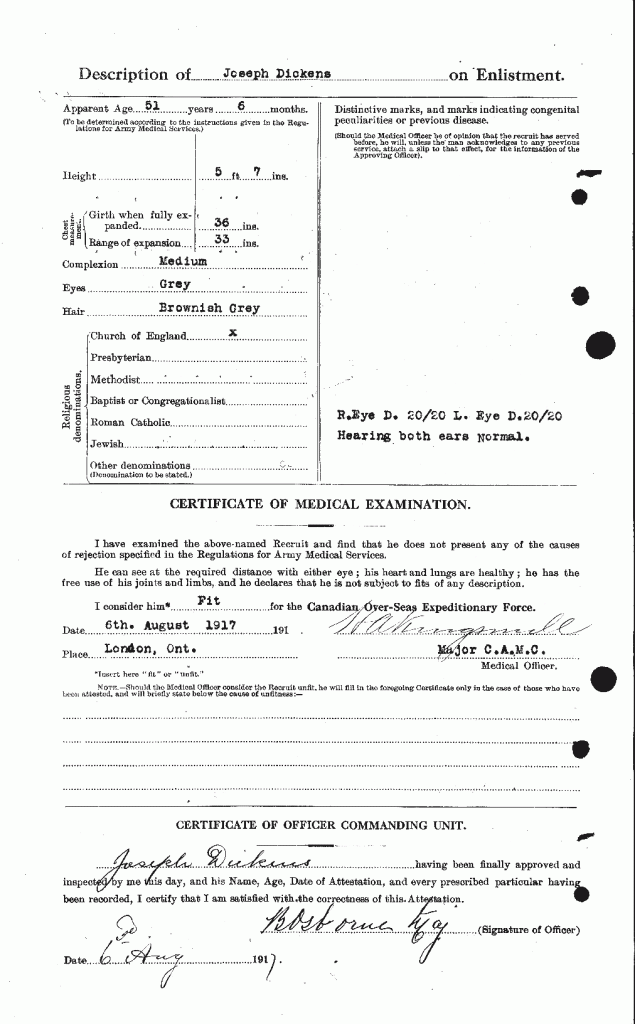 This man was 11-years over aged when he enlisted at 51-years old. Lied about his age upon attestation to 18th Battalion.