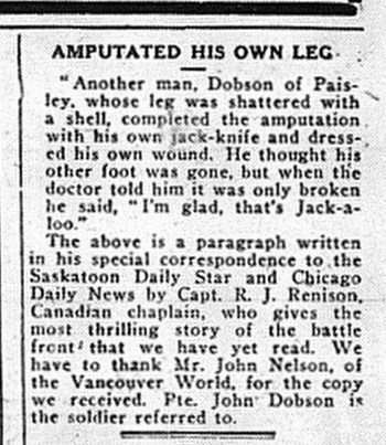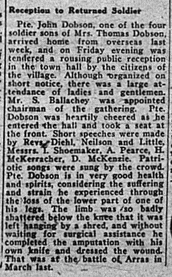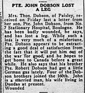 His brother, Pte. Robert William Dobson, served with the 18th Battalion.