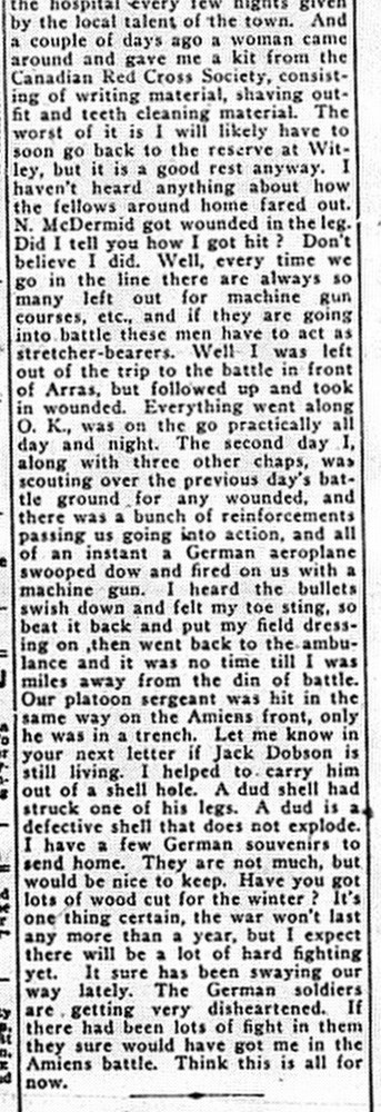 This soldier lost his leg during action at Arras on August 26, 1918 and this passage relates what happened: