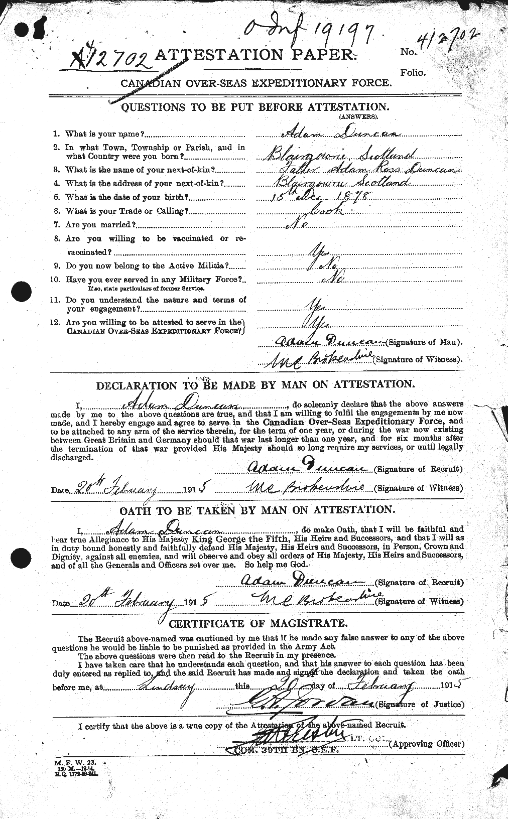 Source: Per research document from Gary in regards to an inquiry at the Great War Dundee web site.