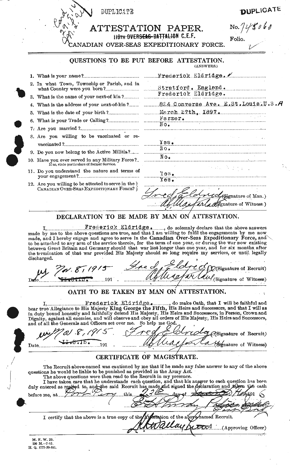 | Name | Eldridge, Frederick |