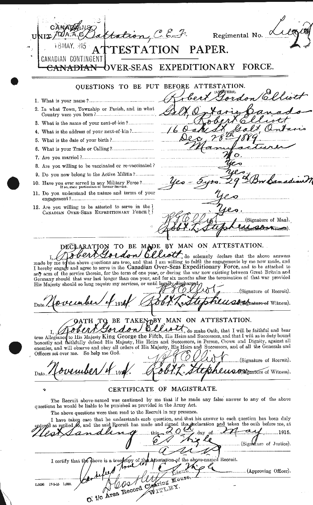 Note that attestation pepers give name as “Elliott” with two ‘t’s and signature shows 1 ‘t’.
