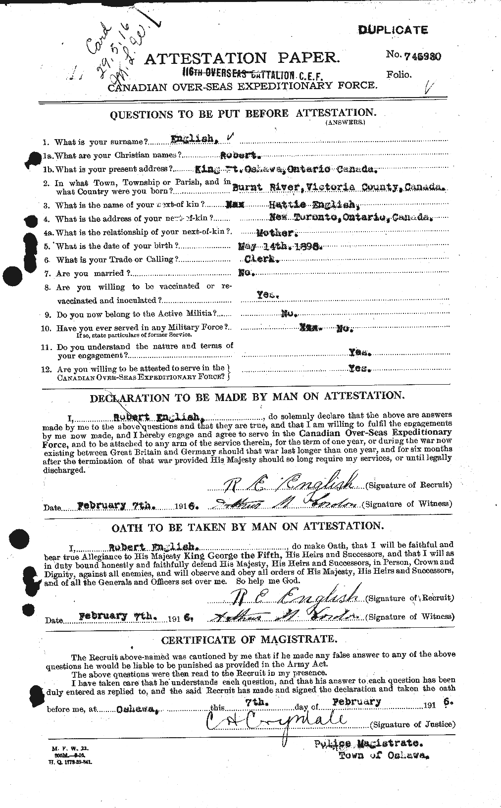 Source: Per email from Michael Carmichael re. associated research about the 116th Battalion, CEF.
