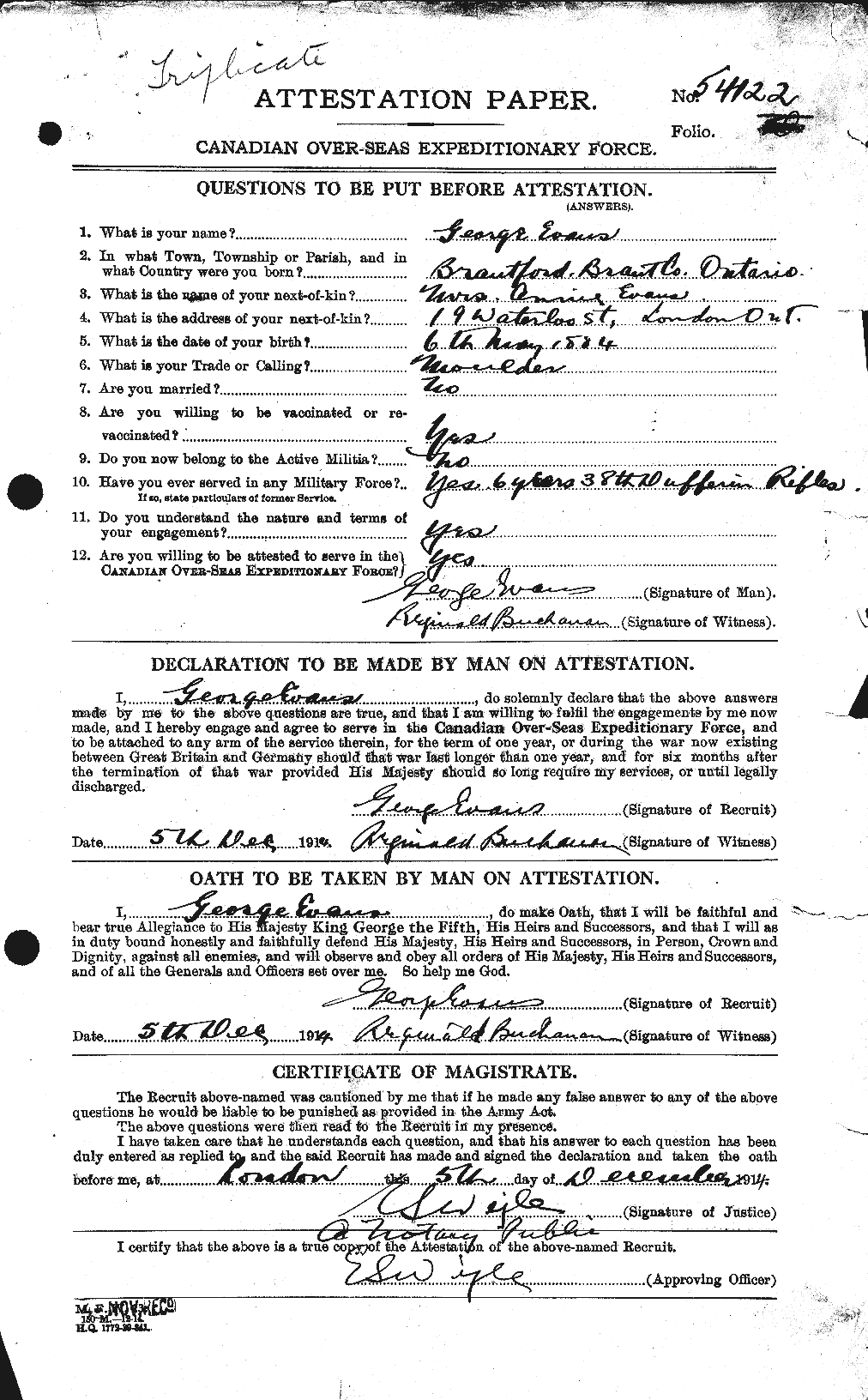 Source: Doingourbit.ca. (2018). George Evans | Great War Centenary Association. [online] Available at: http://www.doingourbit.ca/profile/george-evans [Accessed 26 Dec. 2018].