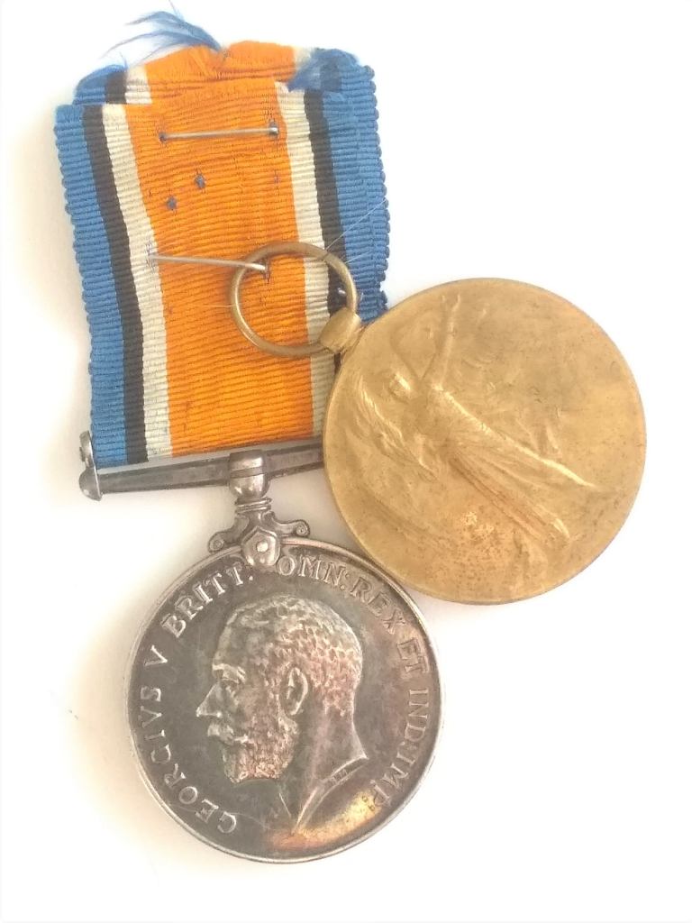 The British War Medal and Victory Medal awarded to 53106 Pte. John Faulkner, 18th Battalion, Canadian Infantry, CEF. He enlisted in London, Ontario on October 26, 1914, just a few days after his son Jack Faulkner (Regimental No. 53107). Maybe he wanted to look out for his son. In any case, his service was cut short due to painful varicose veins of all things. After brief service in France with the 18th Battalion, partly as a cook, he was reassigned to rear area duties.