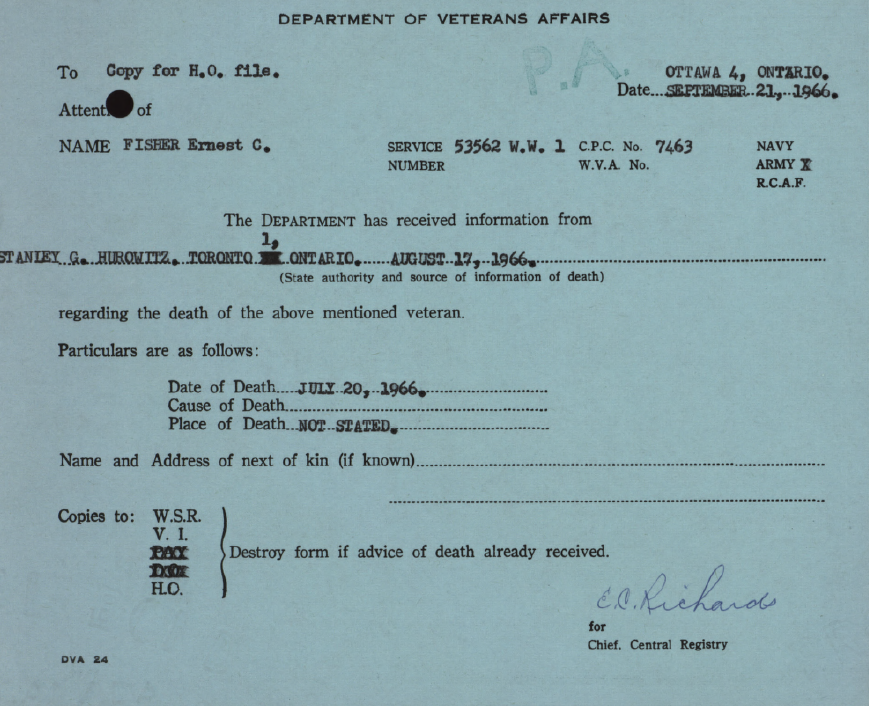 Fisher, Ernest Charles: Service no. 53562 Digitized Service Record Source Find-A-Grave His only son died from injuries sustained while he was flying a training sortie in a Wellington. Share this: Click to email a link to a friend (Opens in new window) Email Click to share on Facebook (Opens in new window) Facebook Click to share on X (Opens in new window) X Click to share on Reddit (Opens in new window) Reddit Click to share on LinkedIn (Opens in new window) LinkedIn Click to print (Opens in new window) Print Click to share on Tumblr (Opens in new window) Tumblr Click to share on Pocket (Opens in new window) Pocket Click to share on Pinterest (Opens in new window) Pinterest Click to share on Telegram (Opens in new window) Telegram Click to share on WhatsApp (Opens in new window) WhatsApp Like Loading...