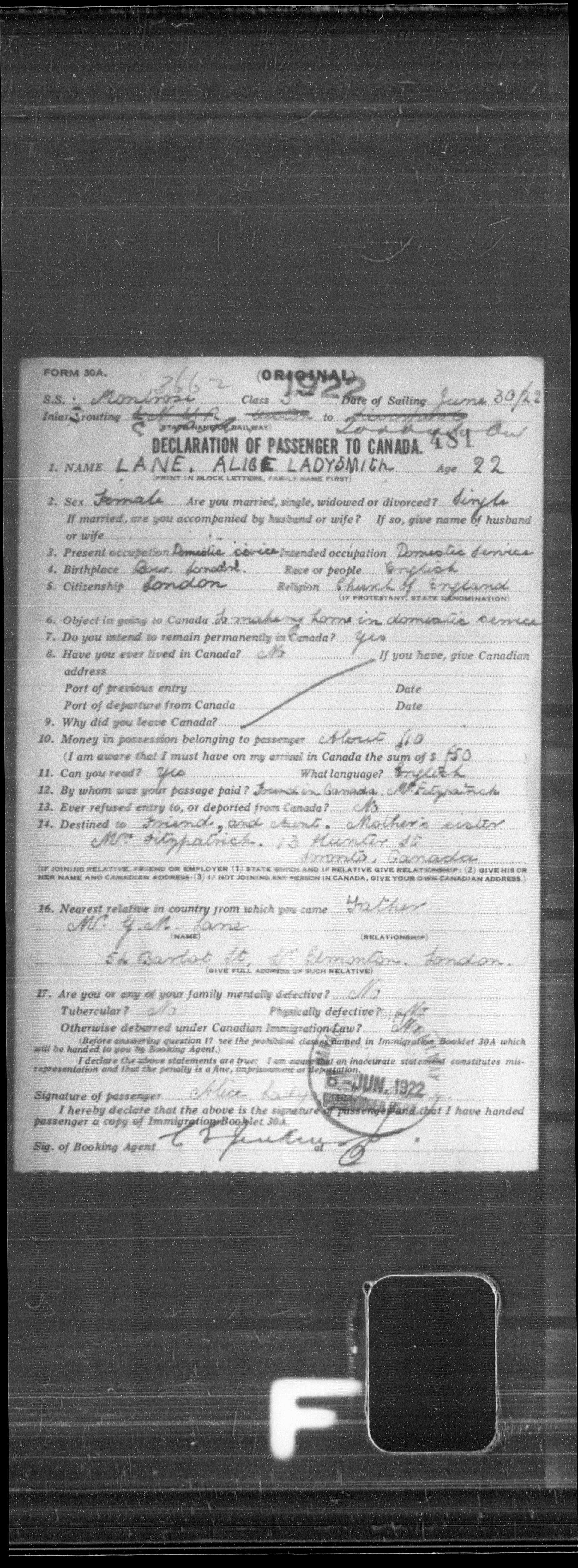 Family Search: Private Arthur Thomas Fitzpatrick was born on 5 September 1890, in Belfast, Ireland as the son of Daniel Fitzpatrick and Ellen McAllister. He married Alice Ladysmith Lane on 28 June 1924, in Fort Erie, Bertie, Welland, Ontario, Canada. He immigrated to Canada in 1913 and lived in Fort Erie, Bertie, Welland, Ontario, Canada in 1930. He registered for military service in 1915. In 1930, his occupation is listed as plumber in Fort Erie, Bertie, Welland, Ontario, Canada.