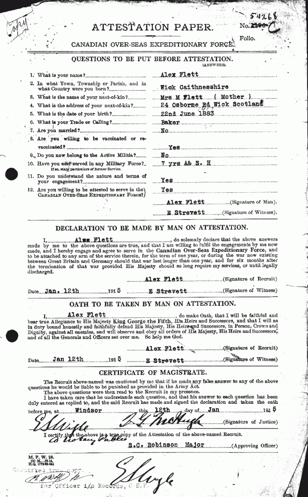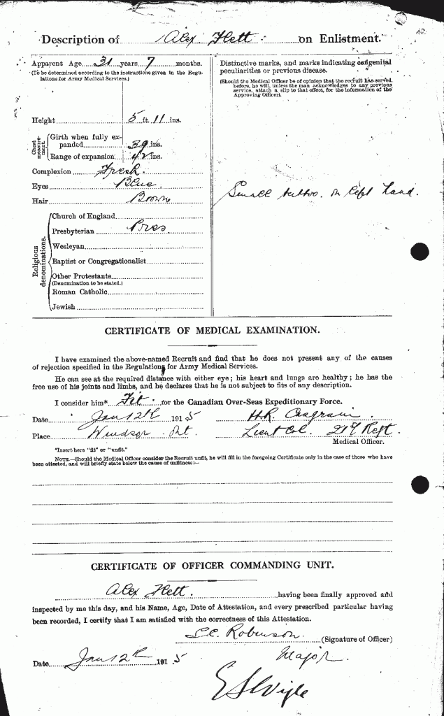 Shell Shock. Appears to have emigrated to the United States after the war.