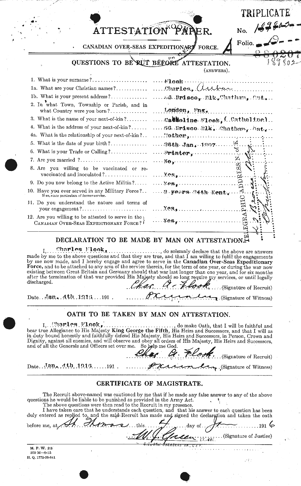 Flook, Charles Albert: Service no. 189802 Digitized Service Record Source: Found while updating Private William George Flook’s Soldier’s Page. Find-A-Grave Gathering Our Heroes Brother to William and Albert. Flook, Charles Albert: Service no. 189802. Gathering Our Heroes. Flook, Charles Albert: Service no. 189802. Flook, Charles Albert: Service no. 189802. With his brothers Albert and Walter. The Acton Free Press. December 16, 1926. Page 1. Share this: Click to email a link to a friend (Opens in new window) Email Click to share on Facebook (Opens in new window) Facebook Click to share on X (Opens in new window) X Click to share on Reddit (Opens in new window) Reddit Click to share on LinkedIn (Opens in new window) LinkedIn Click to print (Opens in new window) Print Click to share on Tumblr (Opens in new window) Tumblr Click to share on Pocket (Opens in new window) Pocket Click to share on Pinterest (Opens in new window) Pinterest Click to share on Telegram (Opens in new window) Telegram Click to share on WhatsApp (Opens in new window) WhatsApp Like Loading...