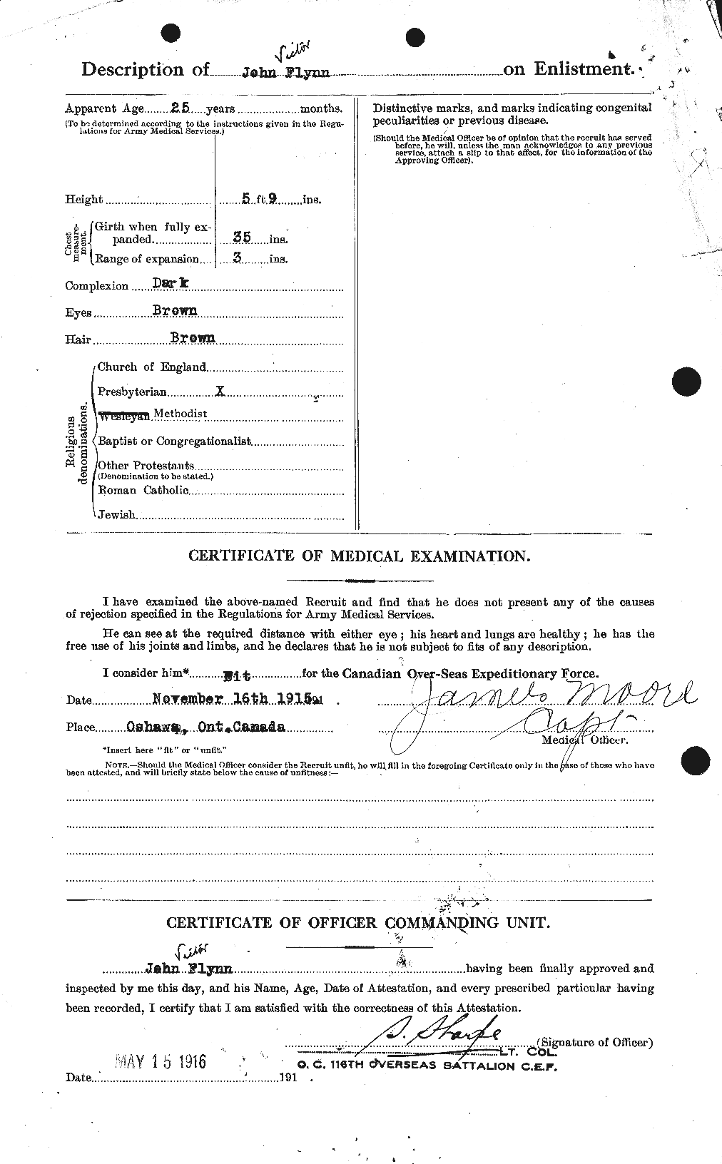 Source: Per post by Mark Carmichael at the 116th Battalion Facebook Page. Originally joined 116th and was transferred to 18th.