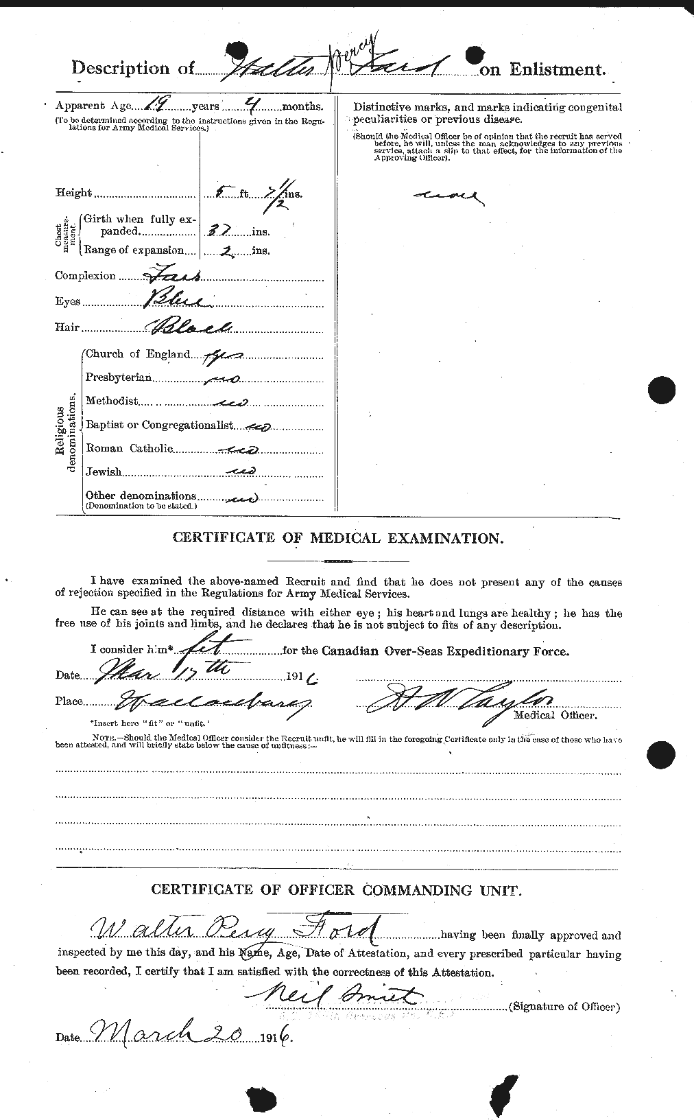 Source: Signed the will of Private Frank Edward Wrightsell, reg. no. 880458. Appears he worked as a clerk for the 186th Battalion upon his enlistment before he was transferred to the 18th Battalion.