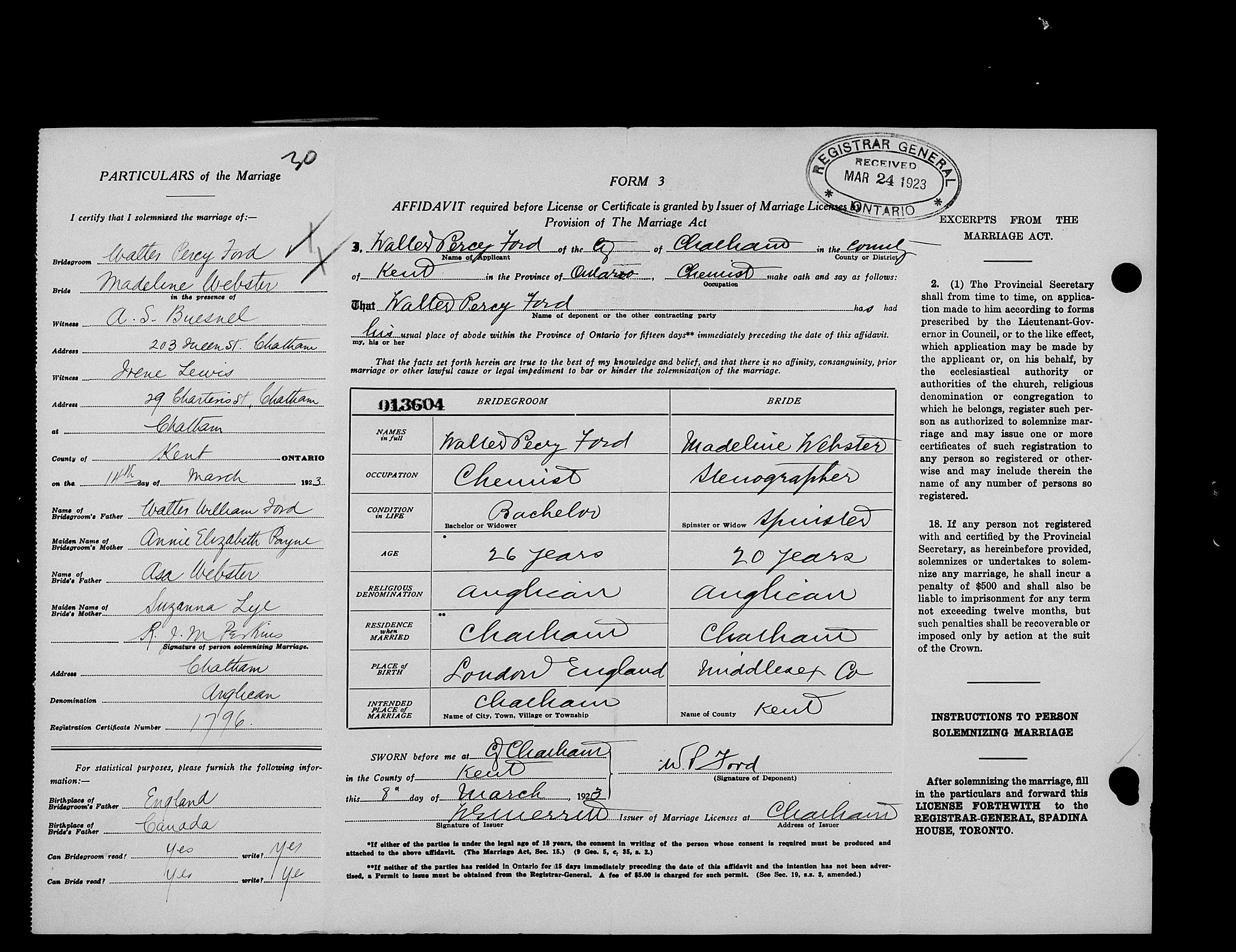 Source: Signed the will of Private Frank Edward Wrightsell, reg. no. 880458. Appears he worked as a clerk for the 186th Battalion upon his enlistment before he was transferred to the 18th Battalion.