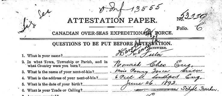 Note that the 1st page attestation pages appear to be altered. In the gif file the words “Farm Labourer” appear to be scratched out and the words “School Teacher” entered in. Perhaps an error in transcription as the screen capture is the original copy and Foster is later indicated in other documents as a “clerk and school teacher”.