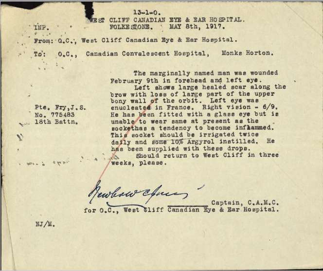Source: Per accident inquiry of the accidental wounding of Private Reginald Skeggs, reg. no. 802205.