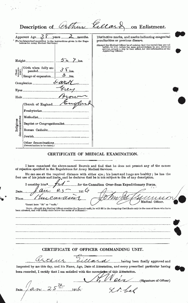 Gillard, Arthur: Service no. 651476 Digitized Service Record Source: Per research by 160th Battalion Facebook Group. Confirmed served with 18th Battalion. Find-A-Grave Family Search Share this: Click to email a link to a friend (Opens in new window) Email Click to share on Facebook (Opens in new window) Facebook Click to share on X (Opens in new window) X Click to share on Reddit (Opens in new window) Reddit Click to share on LinkedIn (Opens in new window) LinkedIn Click to print (Opens in new window) Print Click to share on Tumblr (Opens in new window) Tumblr Click to share on Pocket (Opens in new window) Pocket Click to share on Pinterest (Opens in new window) Pinterest Click to share on Telegram (Opens in new window) Telegram Click to share on WhatsApp (Opens in new window) WhatsApp Like Loading...