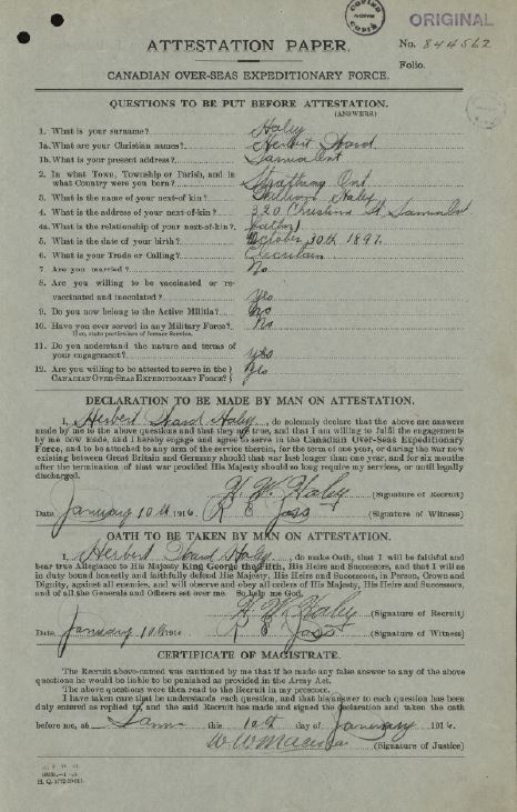 Haley, Herbert Ward: Service no. 844562 Digitized Service Record Source: Per Allen Miller and the 149th Lambtons Facebook Group. Find-A-Grave Share this: Click to email a link to a friend (Opens in new window) Email Click to share on Facebook (Opens in new window) Facebook Click to share on X (Opens in new window) X Click to share on Reddit (Opens in new window) Reddit Click to share on LinkedIn (Opens in new window) LinkedIn Click to print (Opens in new window) Print Click to share on Tumblr (Opens in new window) Tumblr Click to share on Pocket (Opens in new window) Pocket Click to share on Pinterest (Opens in new window) Pinterest Click to share on Telegram (Opens in new window) Telegram Click to share on WhatsApp (Opens in new window) WhatsApp Like Loading...