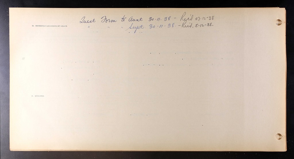 | June 28, 1916 | Completes Form | Completes PARTICULARS OF FAMILY OF AN OFFICER OR MAN ENLISTED IN THE C.E.F. The form indicates that he IS NOT married (see Enlists entry) and that he is not a widower. He has no children, and his parents are both deceased. He is insured with the Prudential Insurance Company. It appears that his attestation listed his sister, Rebecca as his wife.[ii] |